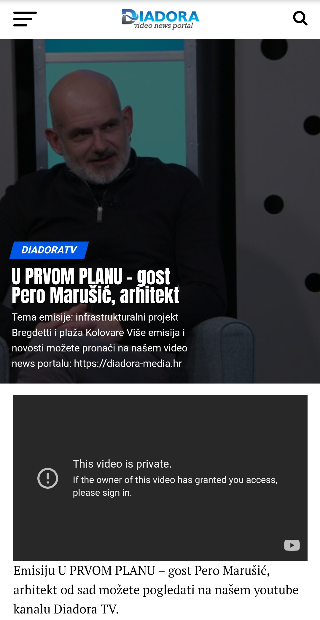 Diadora TV uklonila s YouTube-a emisiju u kojoj je gostovao arhitekt Pero Marušić