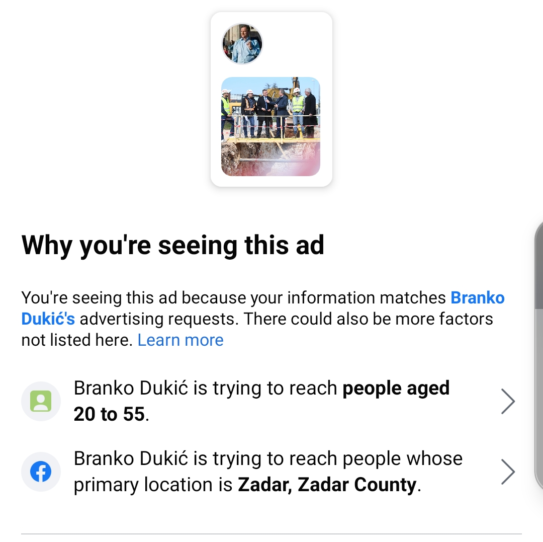Tako se Dukić, ako je vjerovati autentičnim podacima dostupnim na Facebooku odlučio obratiti osobama od 20 do 55 godina. Dakle, Dukića nisu zanimali naši sugrađani stari 18 i 19 godina, kao ni oni stariji od 55.