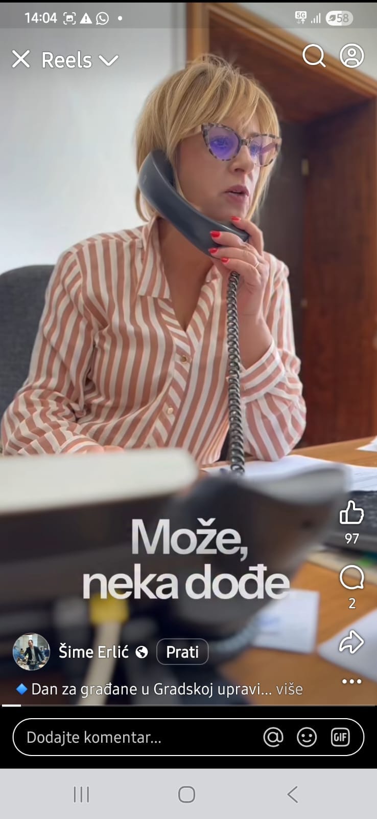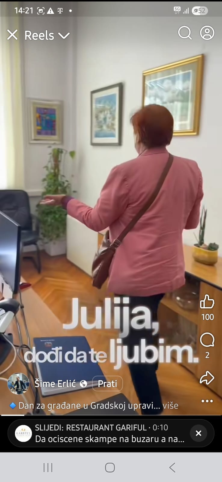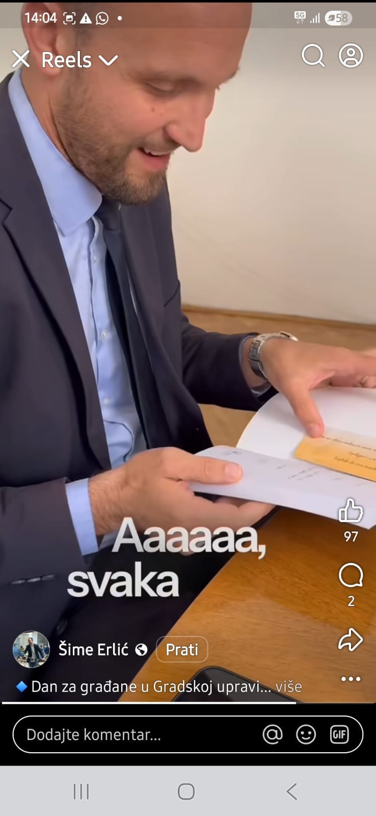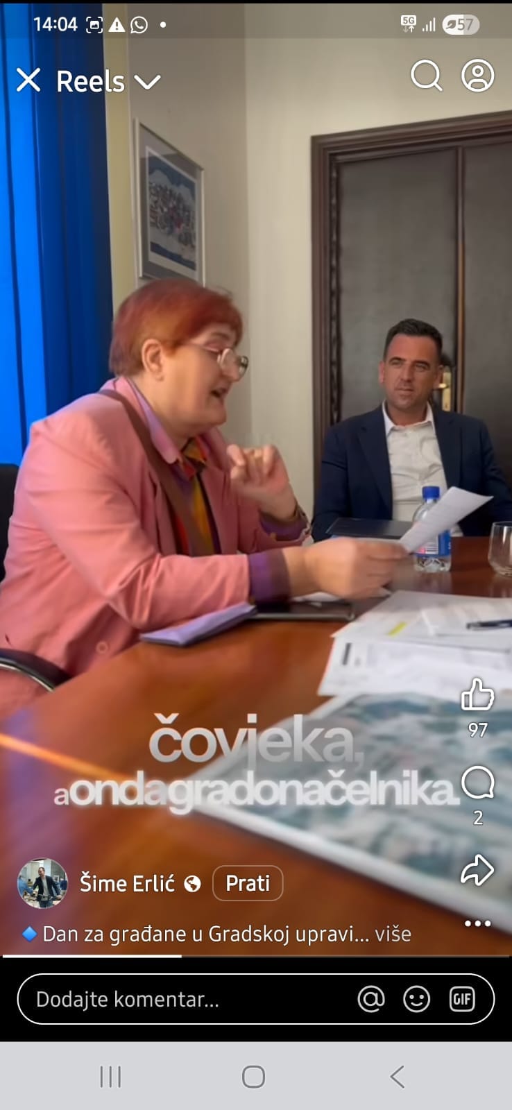 “Mail-ova i poziva je puno, vaših zahtjeva još i više, ali nastojimo vam svima odgovoriti, i čuti vas i vaše probleme”, poručuje Erlić dok sjedi u svom uredu okružen kamerama. Najavljuje da će “jednom mjesečno” primati građane, kao da je to izvanredan čin, a ne zakonska obveza javnog dužnosnika.