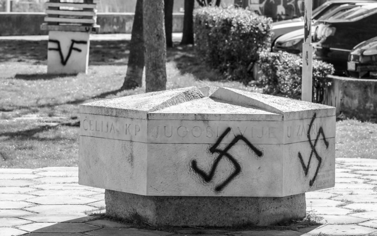 Ne smeta Dukiću ni činjenica kako je spomenuta instalacija, odnosno spomenik dok pišemo ovaj tekst još uvijek išaran kukastim križevima i ustaškim ušatim “u”. Ili mu ta činjenica pričinja zadovoljstvo, ili je njegov pročelnik Robertino Dujela koji je odgovoran za komunalije i slične poslove totalno indiferentan prema ustaškom i nacističkom znakovlju.