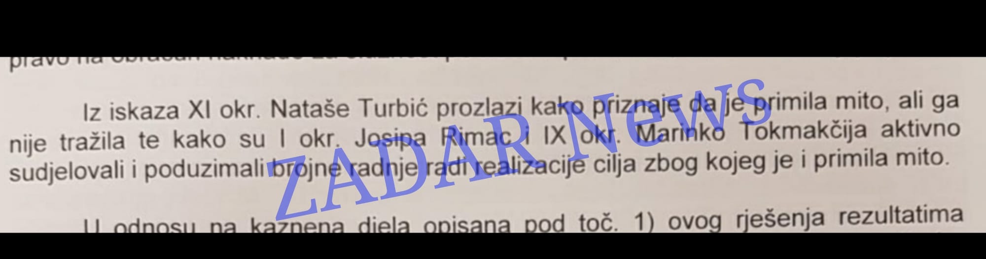 Edugo nakon uhićenja, portal ZADAR News objavio je tajni dokument s ispitivanja Turbić u USKOK-u gdje je ista priznala uzimanje mita. Turbić je, kao što smo objavili na ispitivanju kazala kako mito nije tražila, ali ga je uzela nakon što joj je ponuđeno.