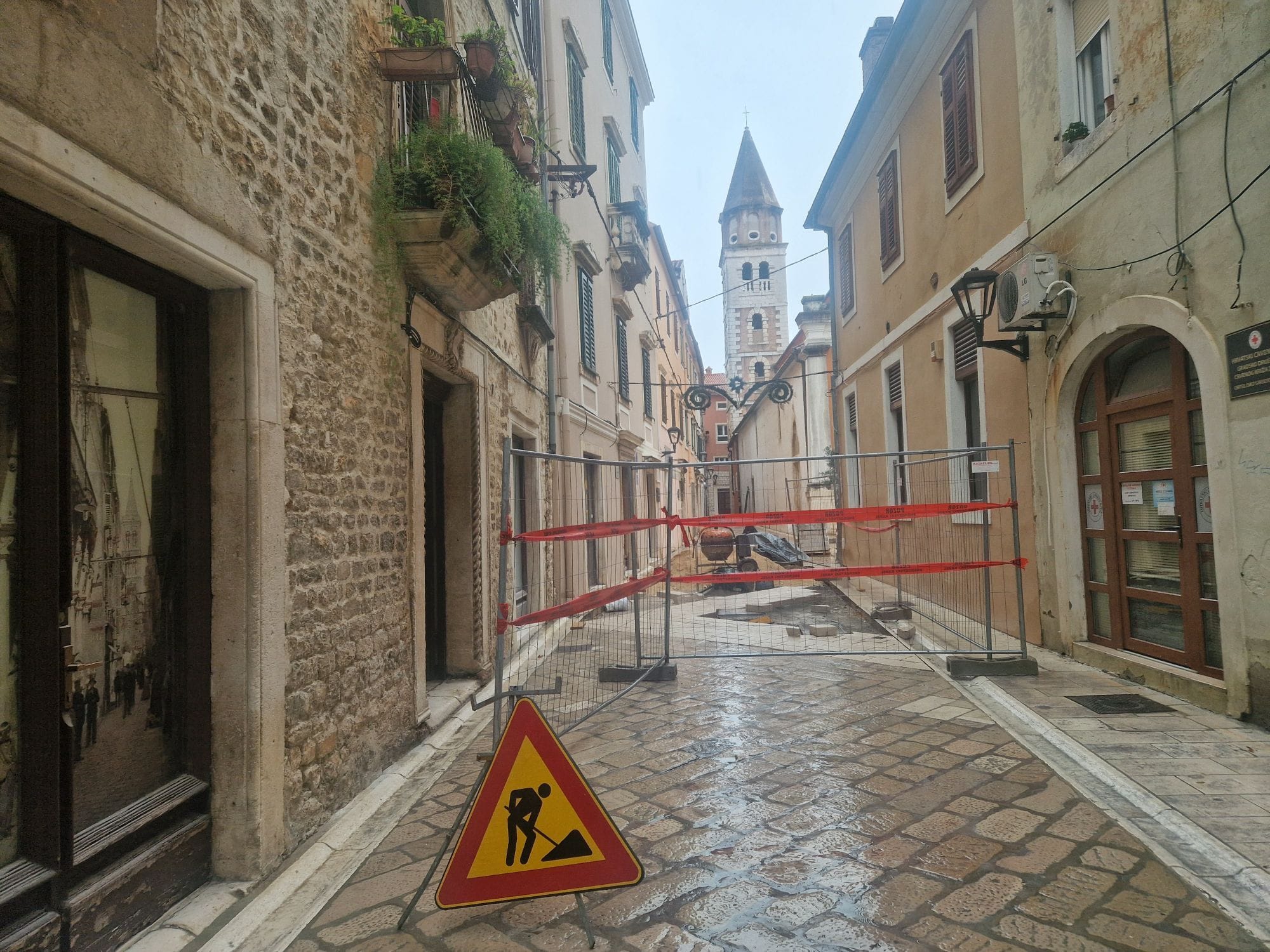 Pod okriljem tame i – kako se čini – blagoslova neke nevidljive ruke, ispred ulaza u zgradu Novice Erlića, oca aktualnog gradonačelnika Šime Erlića, osvanulo je skoro 50 četvornih metara novih kamenih ploča. Bez trunke birokratske dosade: bez odluke konzervatorskog odjela, bez ploče s podacima o izvođaču i naručitelju radova. Naprosto – čisto i učinkovito.