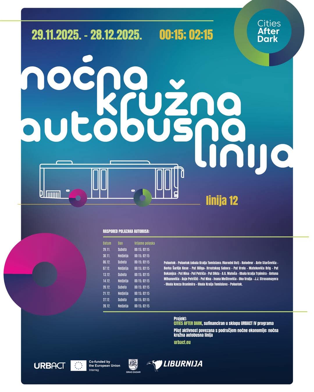 – Uvodimo noćnu autobusnu liniju u vrijeme Adventa koja je prvenstveno usmjerena na Zadranke i Zadrane, i prilagođena njihovim potrebama. Posebice se to odnosi na mlade koji ne moraju brinuti za prijevoz do kuće nakon izlaska. Prijevoz će biti besplatan, jer se troškovi pokrivaju u sklopu EU projekta, i nadam se će ova linija zaživjeti i ubuduće, i tijekom cijele godine – kazao je gradonačelnik Šime Erlić.