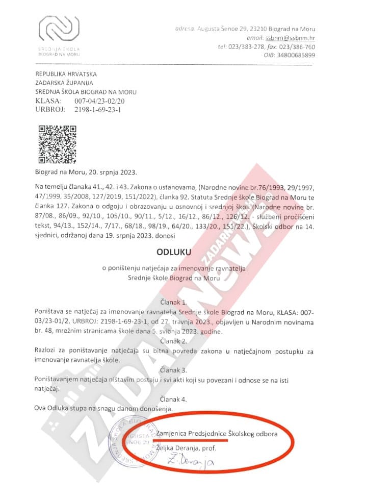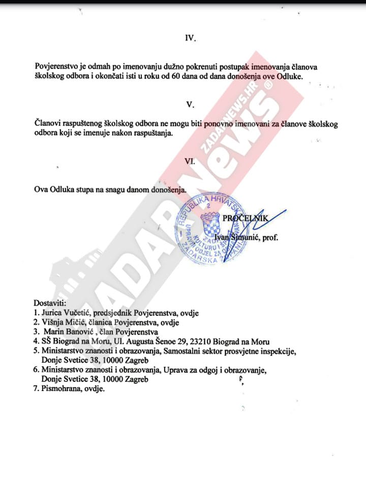 – Vjerujte mi da je bolje da taj dopis ne komentiram – kazala je za kraj v.d. ravnateljice Srednje škole Biograd na Moru Davorka Demo.
