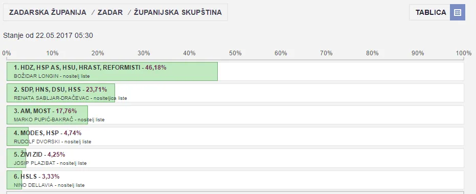 Kašnjenje objave izbornih rezultata u Škabrnji i Galovcu, koja tamošnja izborna povjerenstva nisu upisali prije ponoći, iznenadilo je i sam članove Županijskog izbornog povjerenstava. Zvali smo ih i pitali zbog čega kasne, kazala je na novinarski upit sutkinja Nižić Peroš, dodavši kako su se rezultati daleko brže unosili i objavljivali nego prije četiri godine kada su birački odbori prvo morali nositi zapisnike u Poreznu upravu.