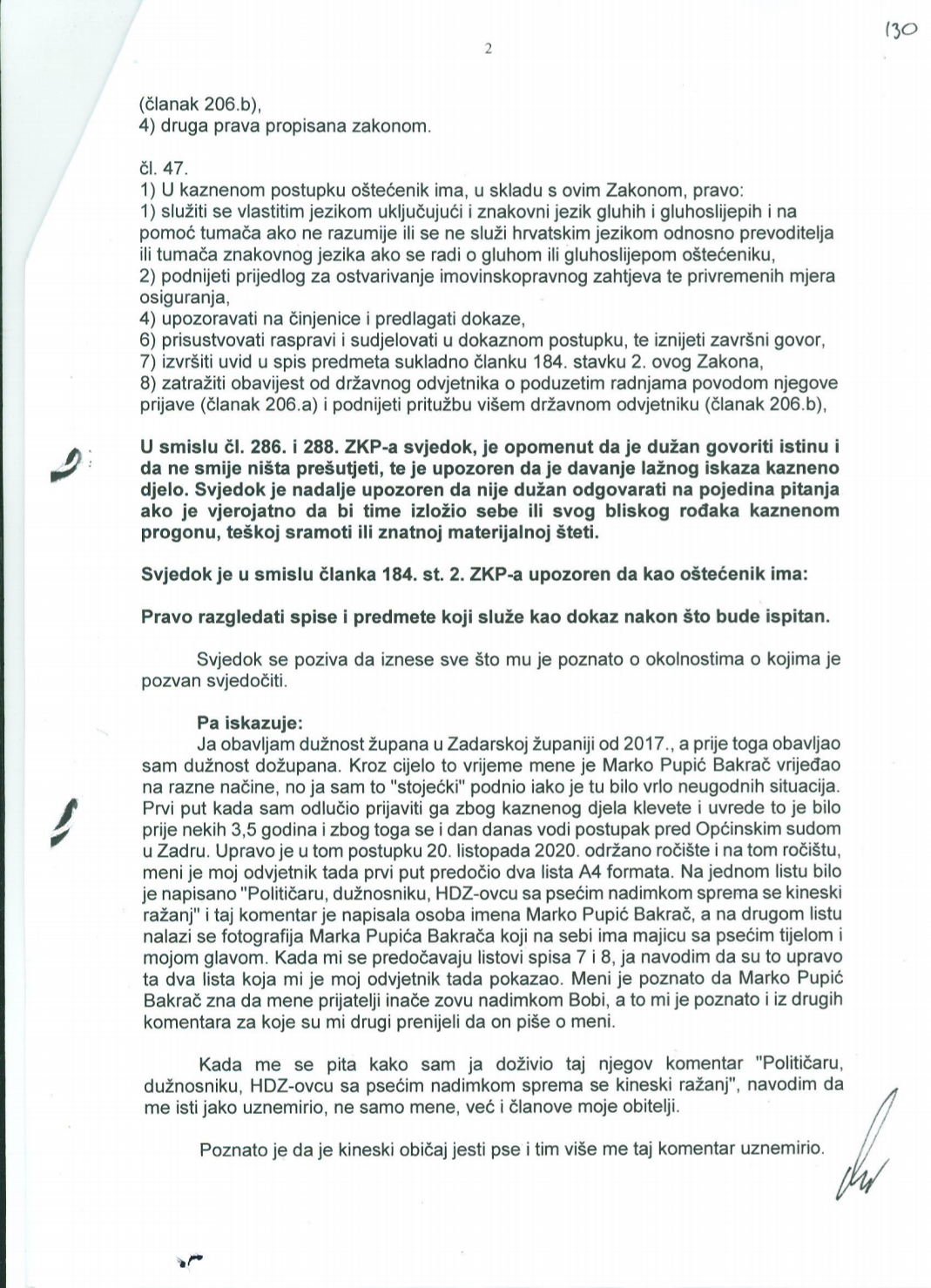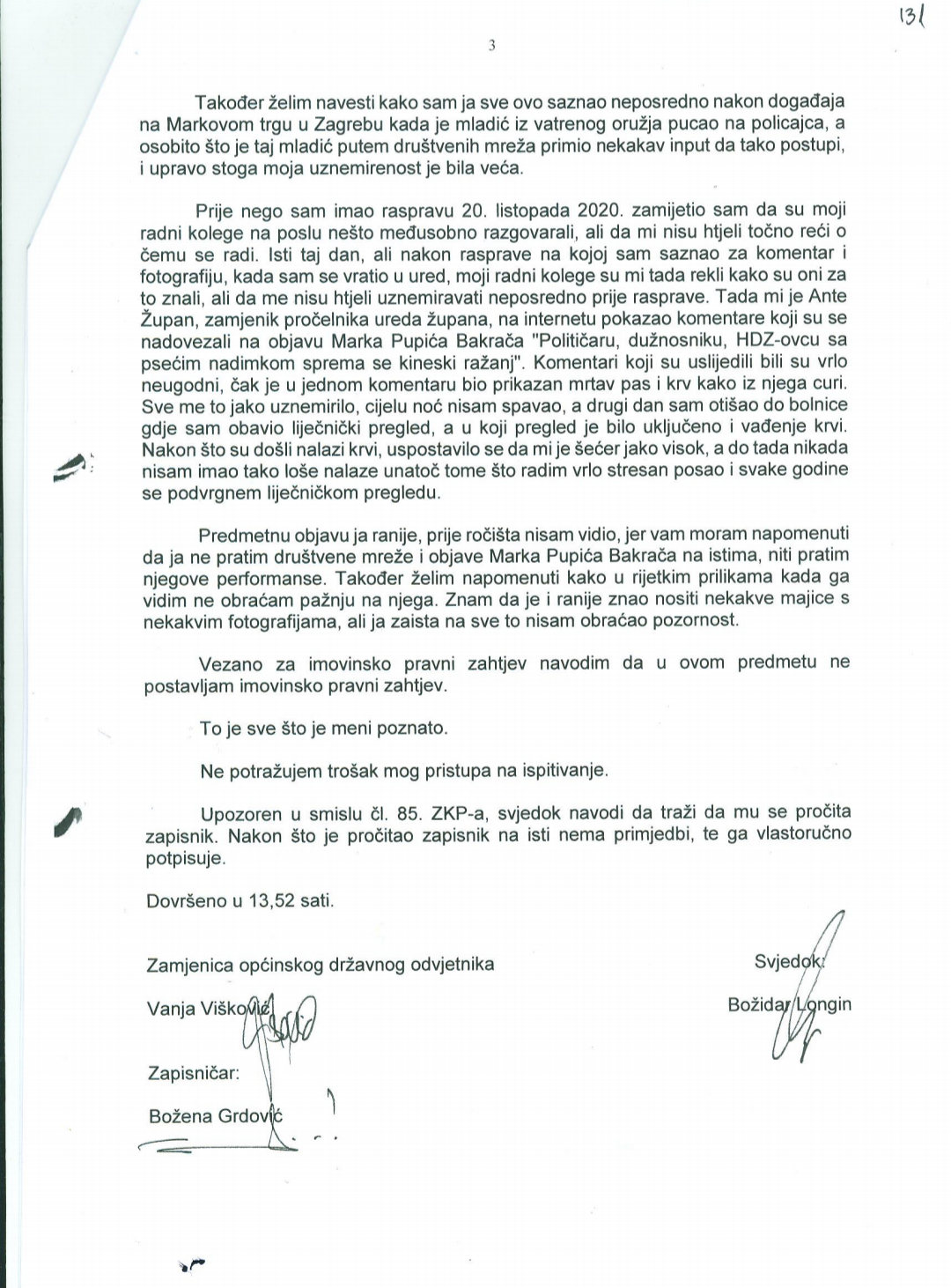 Nakon što je Božidar Longin PU Zadarskoj podnio kaznenu prijavu protiv mene zbog navodne prijetnje isti je dao iskaz ODOu kao svjedok u postupku. Budući su u laži kratke noge, a kod Longina je više nego očigledno da su kratke iz njegovih iskaza proizlazi da Longina prijavitelja PU Zadarskoj pobija Longin svjedok ODOu.