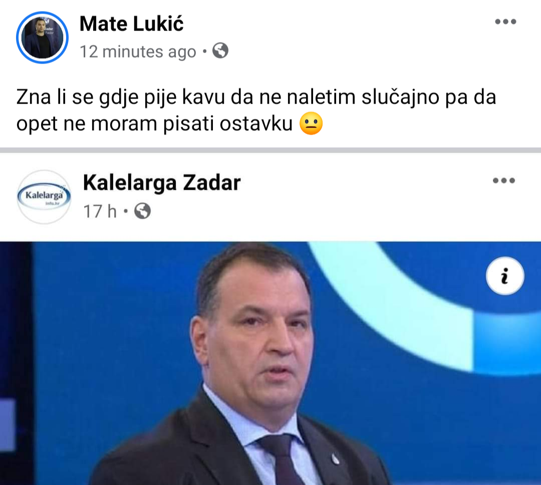 – Zna li se gdje pije kavu da ne naletim slučajno pa da opet ne moram pisati ostavku – napisao je Lukić.