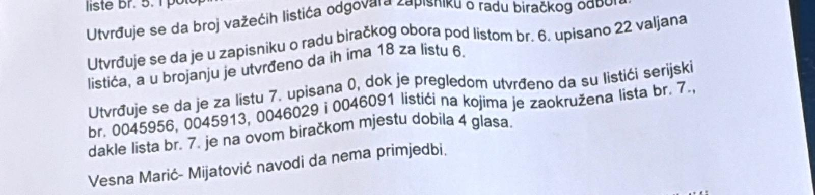 Želim vas obavijestiti da je danas promatračica stranke Pravo i Pravda, Vesna Marić-Mijatović, sudjelovala na vlastiti zahtjev na ponovnom brojanju listića.
