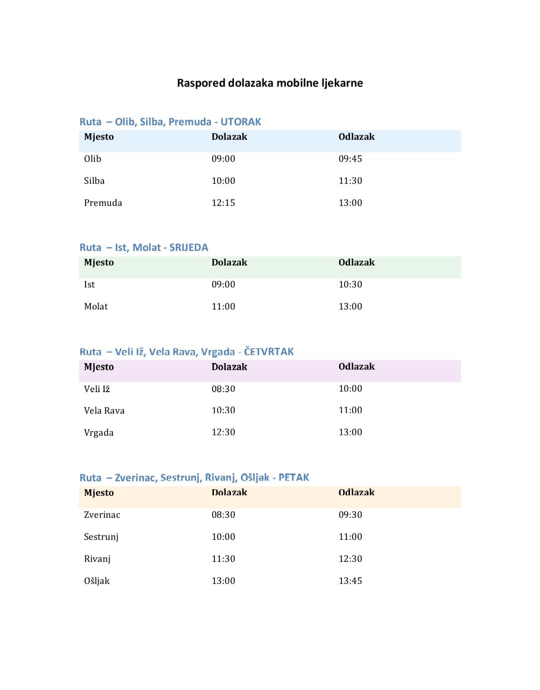Mobilne ljekarne plovit će na tjednoj bazi, prema unaprijed definiranom rasporedu, uz poštivanje svih propisanih standarda zdravstvene zaštite i sigurnosti. Otočani će moći preuzeti propisane lijekove, dobiti stručne savjete farmaceuta te nabaviti osnovna medicinska sredstva, bilo na recept ili bez njega.