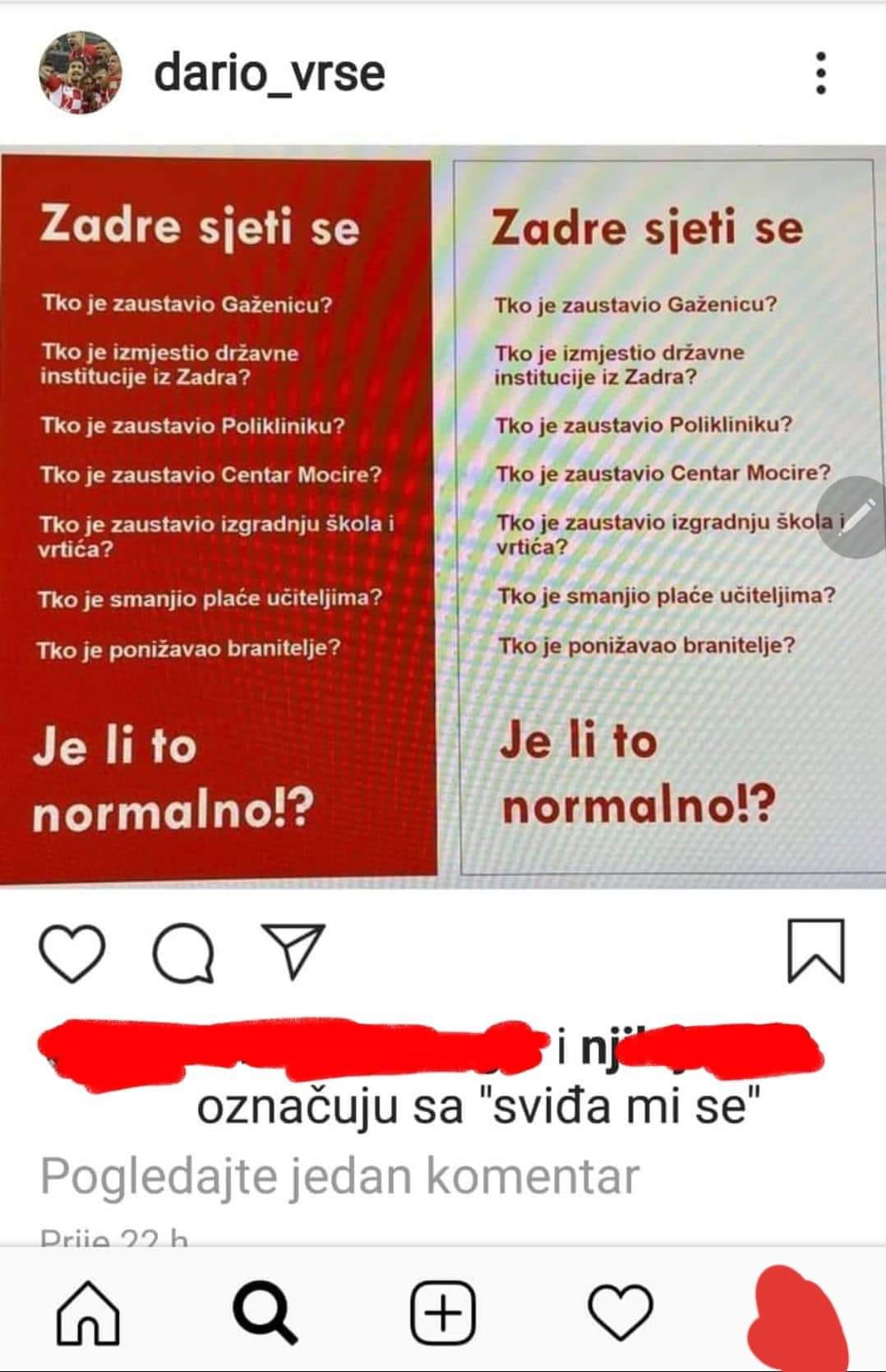 Isti izvor nam je dostavio i fotografije Instagram profila Darija Vrsaljka na kojemu je vidljivo kako je upravo on objavio fotografije opskurnih plakata koji su završili na plakatnim panoima diljem cijelog Zadra.