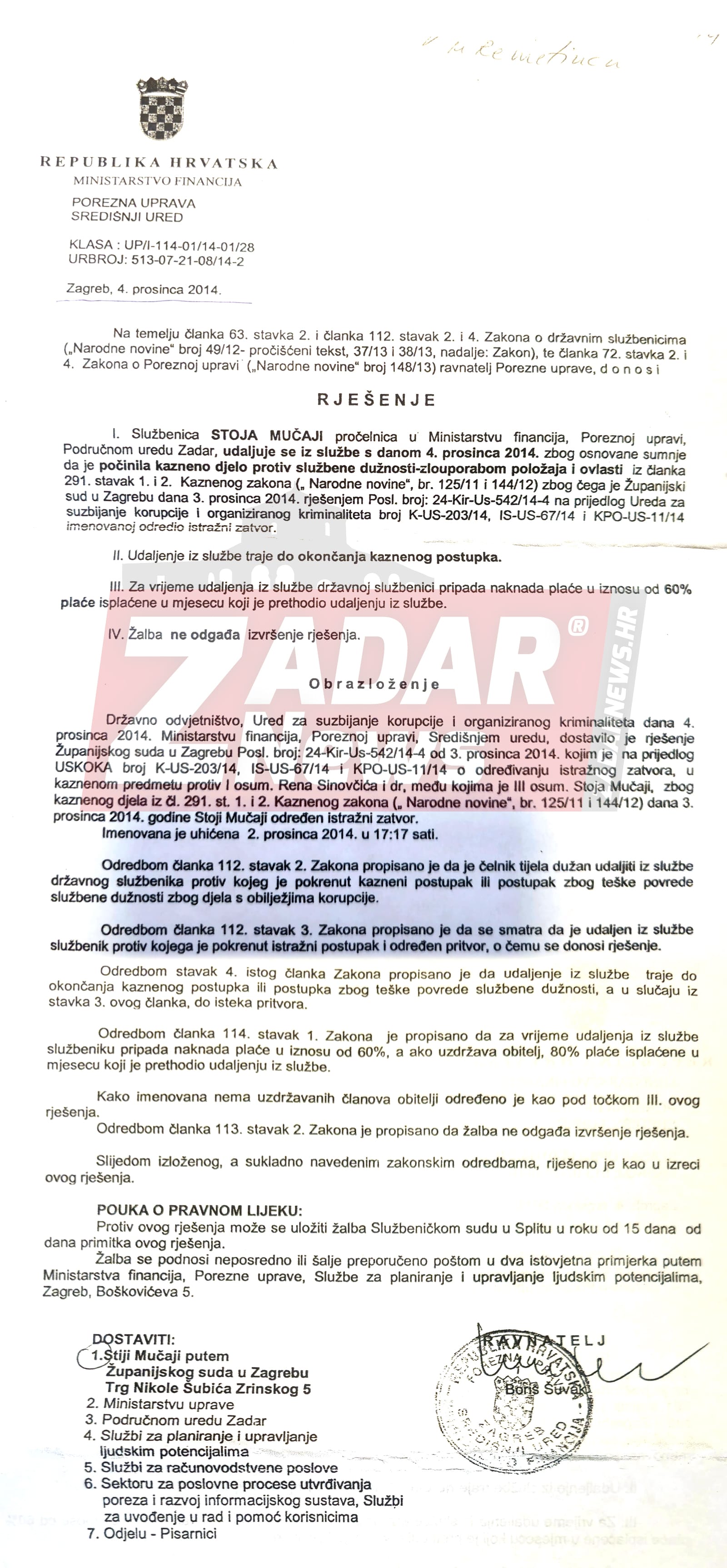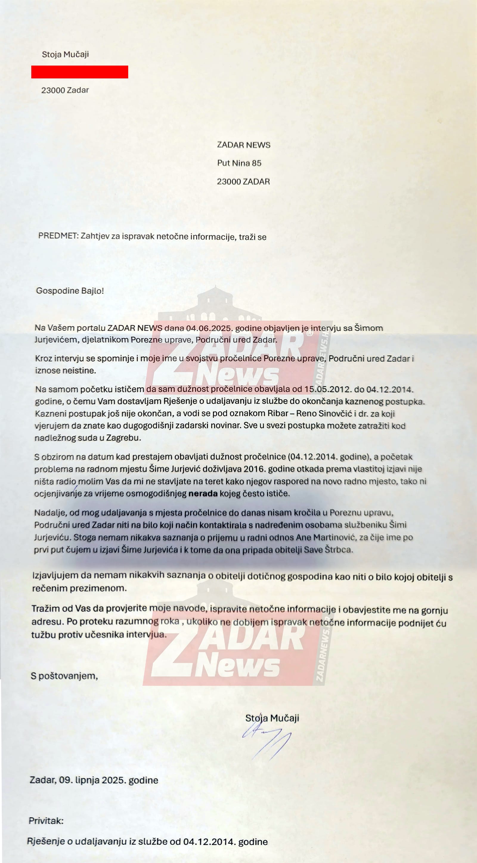 Iako ne ispunjava kriterije koje propisuje članak 40. Zakon o medijima u kojemu je opisano kako i na koji način se nešto demantira ili ispravlja, a to se posebno odnosi na dio u kojemu je opisano "Pravo na ispravak objavljene informacije", zbog javnog interesa ZADAR News odlučio je u cijelosti objaviti dopis koji nam je poslala bivša šefica Porezne uprave Zadar Stoja Mučaji.