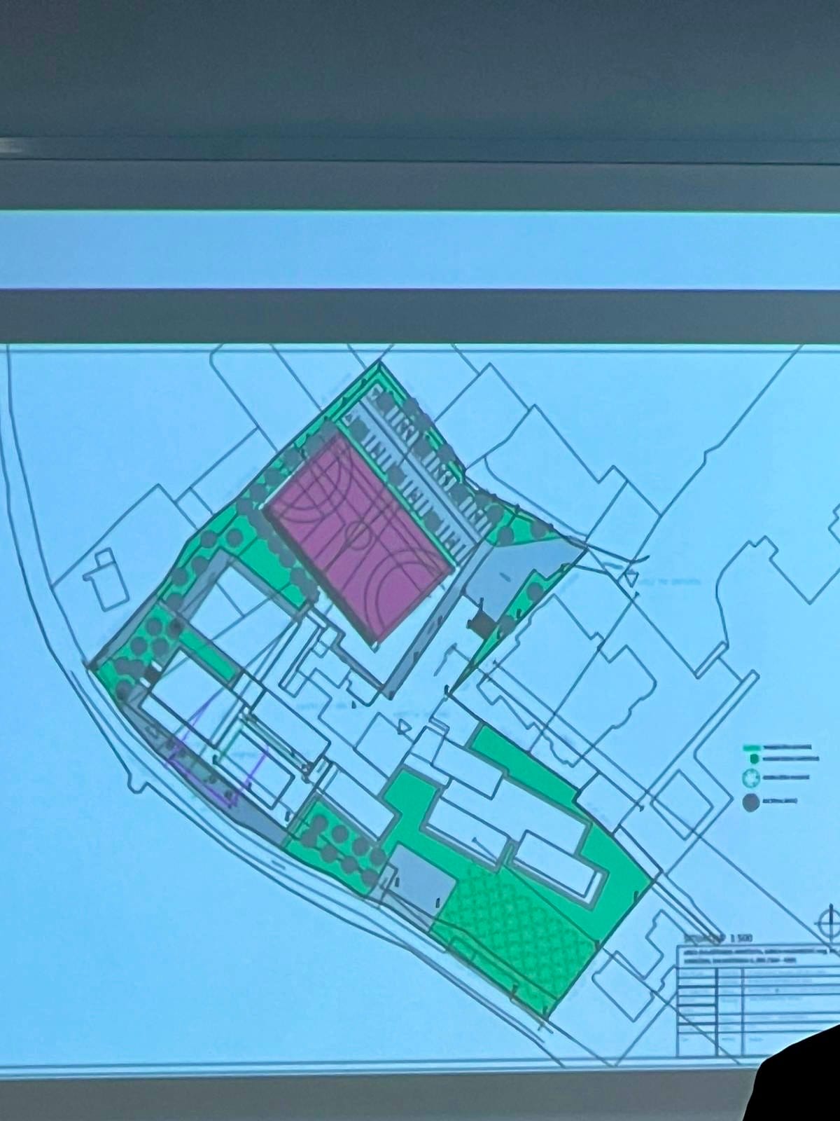 Prijedlog jednog mještanina da se buduće školsko igralište zarotira te time ispriječi između školskog parkirališta i zemljišta u vlasništvu gospodina Ovčara, nije izazvao oduševljenje gradskih predstavnika i Mjesnog odbora, iako su mještani ideju podržali pljeskom.