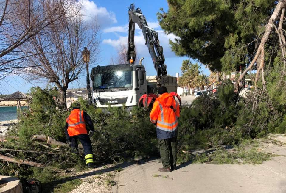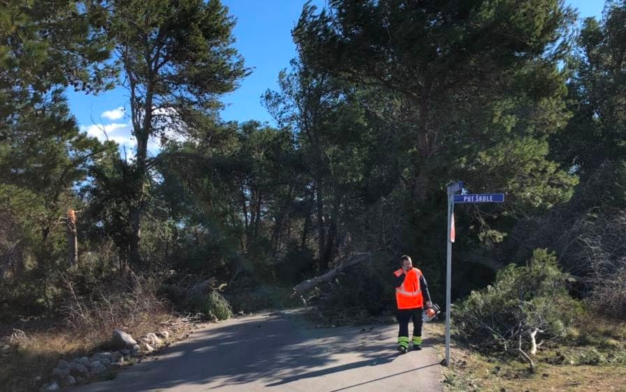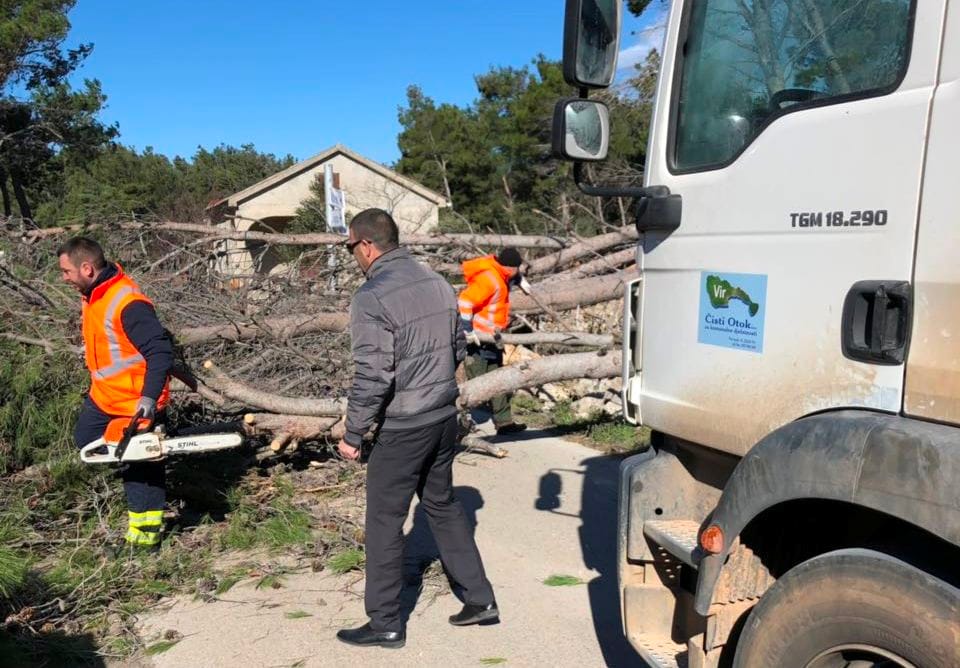 Zasad samo na raščišćavanju virskih cesta, a kada se smiri orkanska bura pod kojom je na udaru cijela Dalmacija, djelatnici Čistog otoka tijekom dana pokupit će i sva druga srušena stabla, grane te počistiti nered koji je prouzročio vjetar.