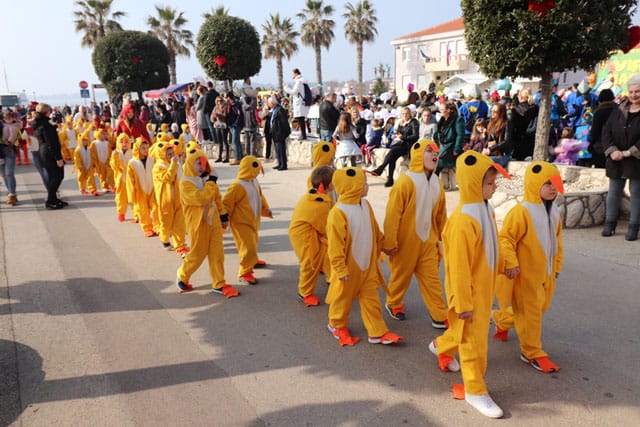 Čak 1.130 mališana iz 32 vrtića u Zadarskoj županiji sa 93 vrtićke tete i brojnim roditeljima u pratnji, došlo je u četvrtak na otok Vir kako bi se zabavili i pokazali svoje maske na najvećoj županijskoj karnevalskoj fešti za najmlađe. Nakon postrojavanja na središnjem virskom Trgu svetog Jure, predvođeni virskom kraljicom i meštrom od maškara krenuli su mališani prvo u defile kroz naselje Centar, a onda prema karnevalskoj pozornici na rivi gdje su taman stigli na krafne, sendviče i sokove. Animatori „Samarcanda“ uprizorili su na karnevalskim daskama popularnu predstavu „Ljepotica i zvijer“, dok su u programu disko kluba zaplesali s raspoloženim domaćinima i gostima eventa „Male virske maškare“.
