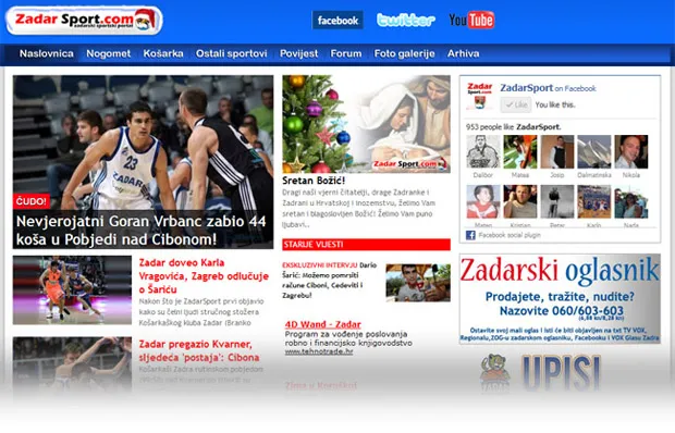 Poštovani čitatelji portala ZadarSport.com. Zadarski sportski portal od 1. siječnja 2012 i službeno je postao dio novoosnovanog portala ZDNews.hr. Nakon više od četiri godine kontinuiranog rada, istraživačkog novinarstva i praćenja sportova u gradu, a ponajviše košarke, smatramo da je došlo vrijeme da naš portal dobije novu dimenziju. Vama, našem vjernom čitatelju, možda i komentatoru, u osnovi se neće ništa promijeniti, dakle, svi tekstovi napisani od 15. svibnja 2007 do danas (31. prosinca 2011) i ostali popratni sadržaj portala ZadarSport.com ostaju isti, samo se nalaze na novoj adresi.