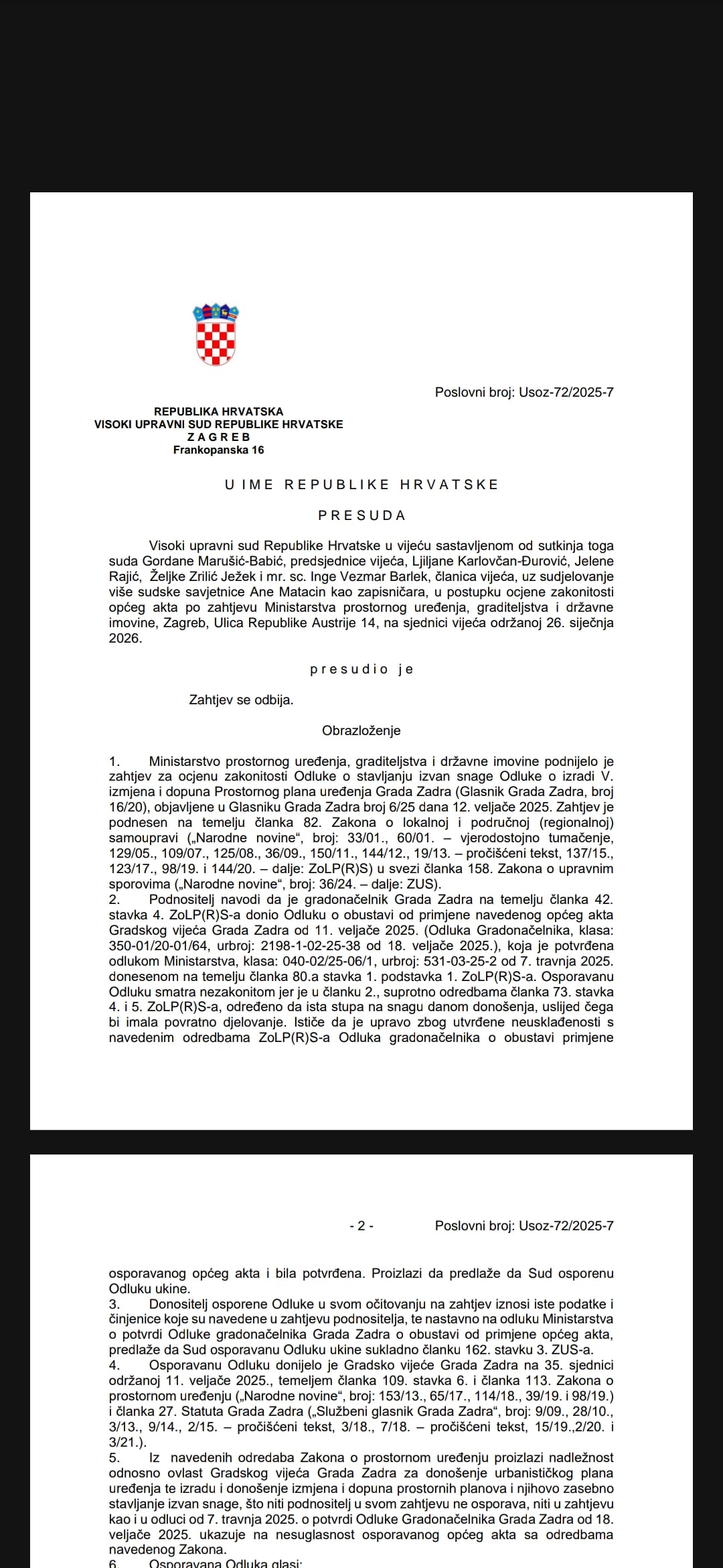 Visoki upravni sud Republike Hrvatske potvrdio je ono što smo od početka tvrdili: naša odluka bila je zakonita, odgovorna i od iznimnog javnog interesa.