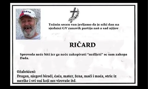 Predsjednik gradskog odbora SDP-a u Zadru Daniel Radeta na Facebooku je objavio osmrtnicu Ričardu.
