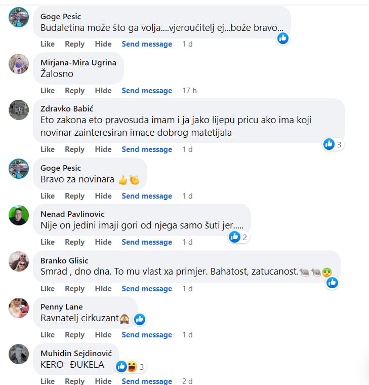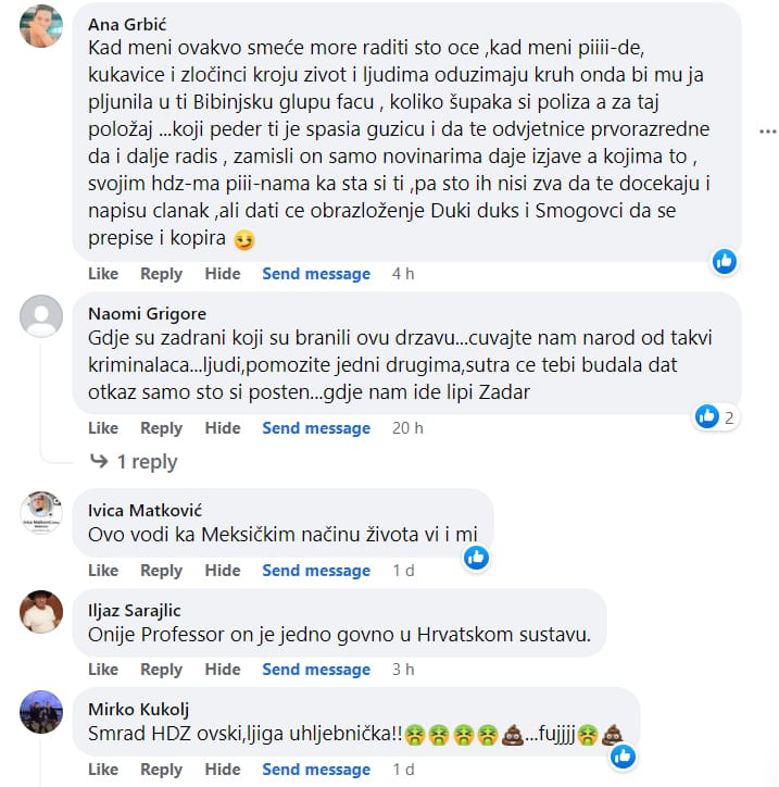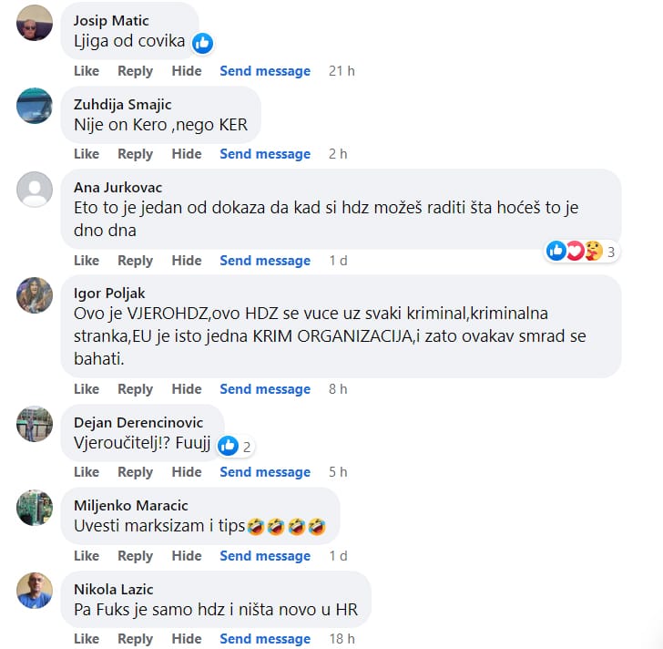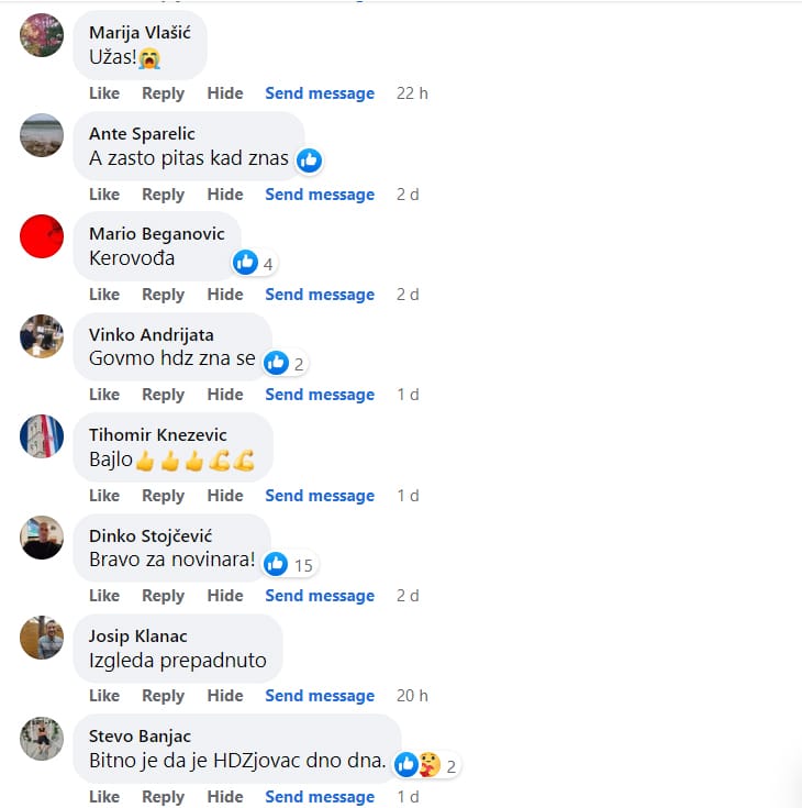 Naime, otkako smo jučer na društvene mreže postavili dva videa, jedan u kojemu zbunjene odvjetnice Ivice Kera pokušavaju zaustaviti snimanje ZADAR Newsa koji ima odluku Suda da može snimati suđenje, i drugi na kojemu se vidi kako Kero bježi od novinara, čitatelji ZADAR Newsa, a kojih na društvenim mrežama ima preko 60 tisuća registriranih pod punim imenima i prezimenima, neprestano, iz minute u minutu komentiraju Kera i njegove odvjetnice. Niti jedan pozitivan komentar u moru od stotina komentara nije se pojavio. Nitko, ali baš nitko do zaključka ovog članka nije stao u obranu Kera. Štoviše, ljudi mu jebu sve po spisku, ne samo njemu, već i njegovoj sekti zvanoj HDZ.
