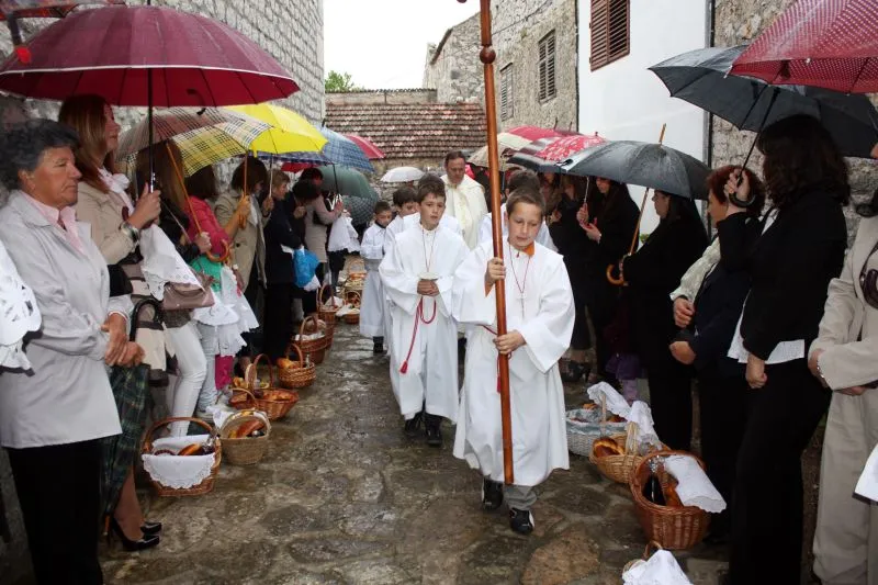 Vrijeme Uskrsa je i vrijeme bogatih stolova, domaćih jela i slastica, ali i slavlja u krugu obitelji. Domaće delicije poput janjetine, kuhane šunke, uskrsne pogače i uskrsnih jaja te mlade kapulice i crnog vina, tek su dio onoga što žitelji ovog kraja znaju pripremiti.