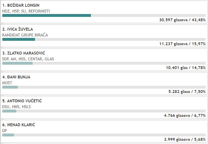 Službeni rezultati Državnog izbornog povjerenstva u 22:00h