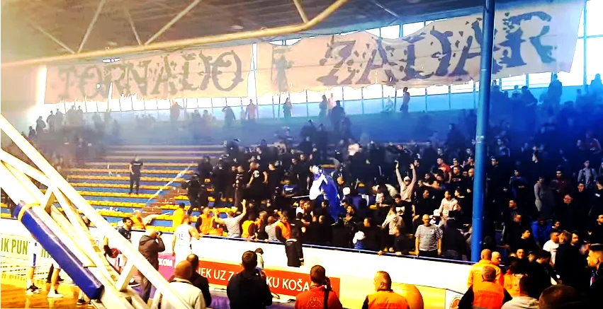 Susret 21. kola Premijer lige između Zadra i Škrljeva nije dobro započeo za zadarski Tornado. Nakon poigravanja s pirotehničkim sredstvima, utakmica je prekinuta. Tada je uslijedilo pražnjenje istočne tribine Jazina, a Tornadovce su iz Jazina istjerali zaštitari i policija.