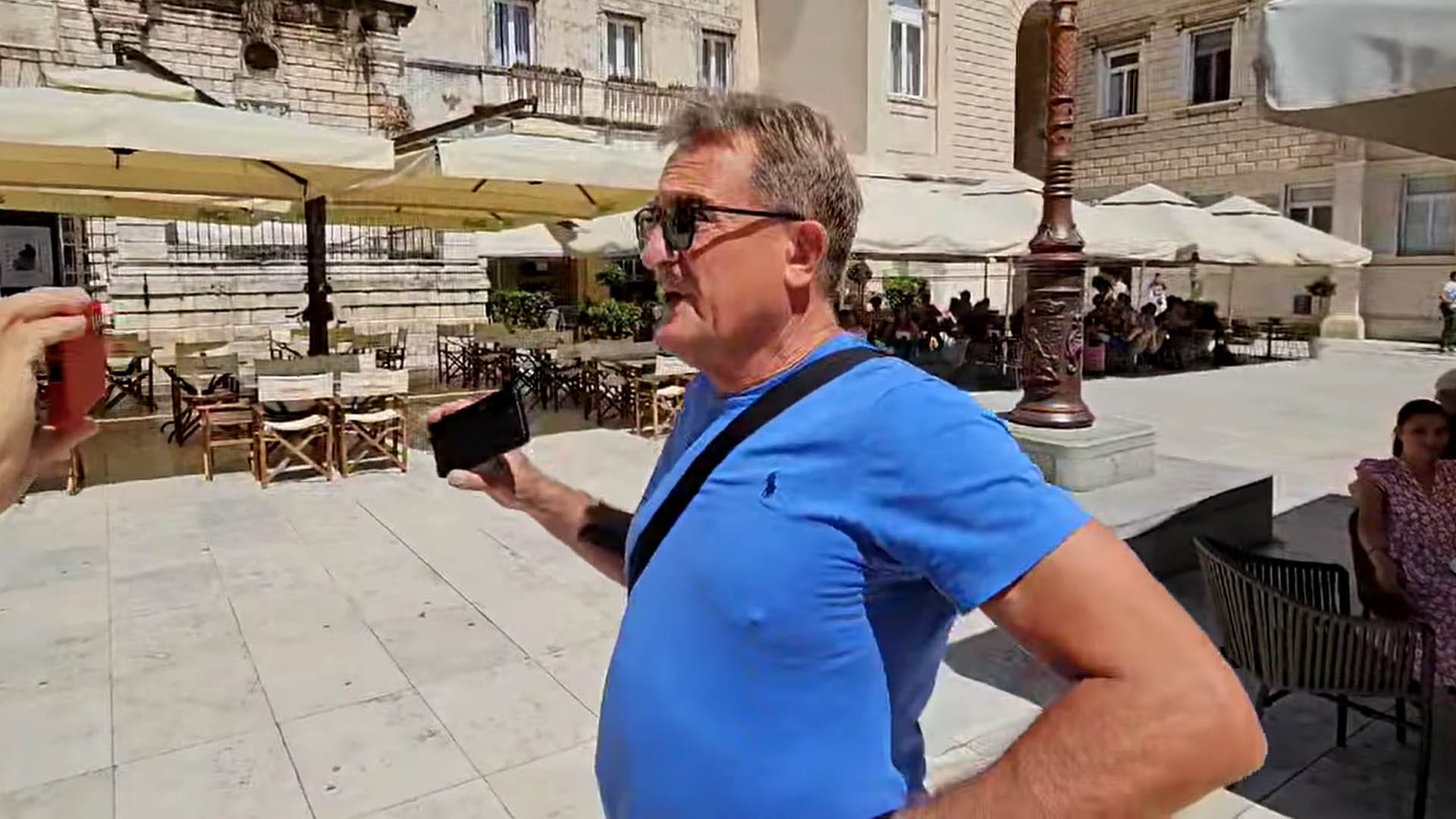 S druge strane, nekadašnji ministar i bivši zadarski gradonačelnik i aktualni uskočki optuženik, Božidar Kalmeta danas je djelovao zbunjeno, dezorijentirano, preplašeno i potpuno van kontrole. Dok je novinarski tim ispijao kavu na Narodnom trgu, nakon što su pored nas više puta prošli pročelnik ureda gradonačelnika Ante Ćurković i Tihomir Bakarić, kao grom iz vedra neba pred novinarima se pojavio Božidar Kalmeta. Na konkretna pitanja nije davao odgovore, a od samog početka je tvrdio kako se njega “uhodi i maltretira”. Nastavio je neosnovano Kalmeta optuživati novinare i da ga “tajno snimaju” iako je sve što je snimljeno – javno snimljeno i javno objavljeno, ali na ozbiljna pitanja novinara o korupciji i prenamijeni zemljišta nije htio govoriti. Uplašeni i dezorijentirati Kalmeta tako je krenu s Narodnog trga prema kafiću Toni. Cijelo vrijeme nije ispuštao mobitel iz ruke, ali se u više navrata vidjelo kako mobitel drži fokusiran u krivom smjeru i prema podu, odnosno okolnim zidovima i izlozima. Nije jasno zapravo je li Kalmeta u svojoj uznemirenoj šetnji i bijegu od novinara za nekoga snimao izloge ili je sve samo stvar proizvoljne novinarske interpretacije.