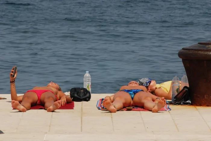 Toples na Morskim orguljama i Pozdravu suncu nije rijetka pojava. I danas smo ‘uhvatili’ tri mlade dama kako uživaju sunčajući se bez gornjeg dijela kostima u centru grada.