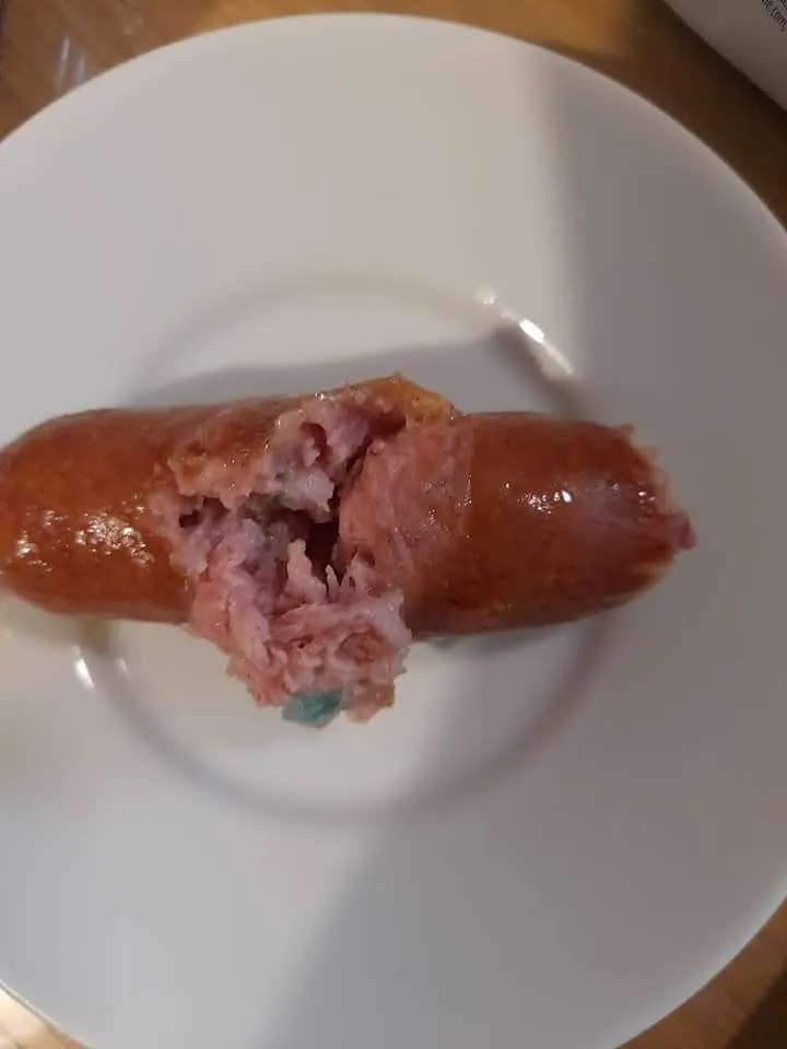 Čitatelj ZADAR Newsa neugodno se iznenadio kada je danas u jednom zadarskom dućanu kupio kobasice. Unutra je, naime, pronašao nešto nalik zelenom komafiću gume.