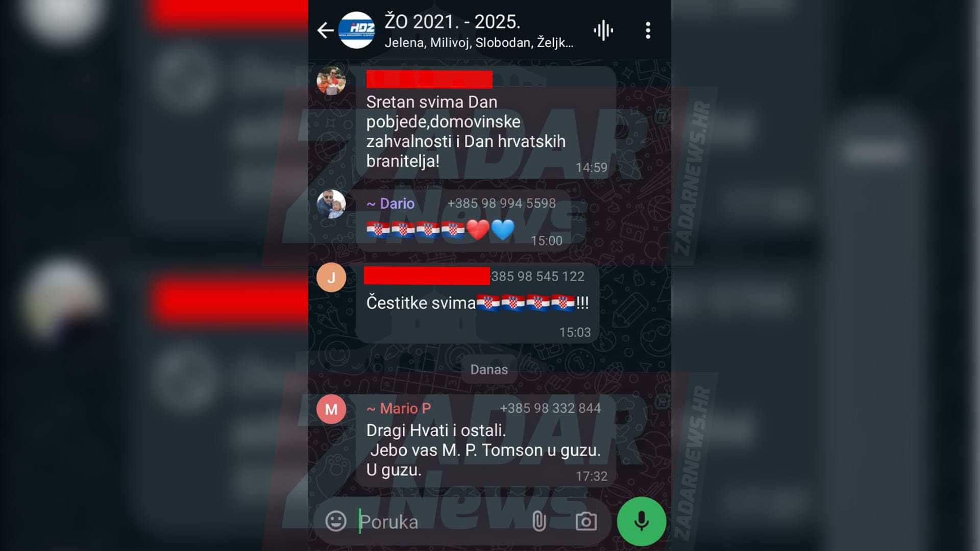 Bivši HDZ-ov pročelnik za Zdravstvo i socijalnu skrb u Gradu Zadru, koji je na toj funkciji proveo više od jednog desetljeća i bliski prijatelj Božidara Kalmete, s kojim dijeli i kumske veze, notorni Mario Pešut, o kojemu smo pisali u više navrata kao o obiteljskom nasilniku i osobi pravomoćno osuđivanoj za klevetu, ovih dana je u službenoj HDZ-ovoj WhatsApp grupi Županijske organizacije, povodom Dana pobjede i domovinske zahvalnosti i Dana hrvatskih branitelja napisao sljedeću rečenicu “Dragi Hrvati i ostali. Jebo vas M. P. Tomson u guzu. U guzu.”